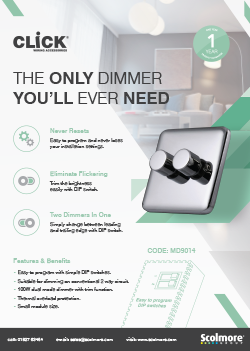 The problems of flickering and poor dimming range are well-documented issues for installers when it comes to LED dimmers. Now Scolmore has come up with an intelligent dimmer module that not only eliminates flickering, but is much easier to control than regular dimmers, and is essentially two dimmers in one – offering the installer maximum compatibility.